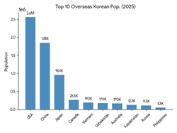 재외동포청(청장 이상덕)은 31일 이 같은 내용을 담은 **'2025 재외동포현황'**을 발표했다. 2024년 12월 31일을 기준으로 산출된 이번 통계에 따르면, 총 재외동포 수는 700만 6,703명으로 집계됐다. 이는 지난 2023년 발표(708만 1,510명) 대비 1.06%(7만 4,807명) 감소한 수치다.